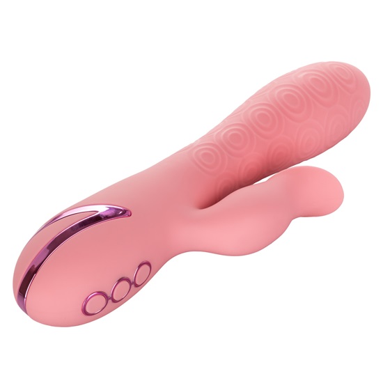 The California Dreaming Pasadena Player Rabbit Vibrator by CalExotics is a dual-stimulating rechargeable women’s toy! targets your g-spot with its rotating shaft, whilst the rabbit ear vibrates and flickers on your clitoris simultaneously bringing you to ecstasy.