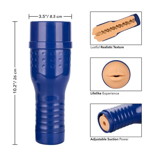 The Shona River Mouth textured inner chamber of this masturbator is made from Real Skin Technology, giving you the life-like feel of oral sex, while the adjustable cap allows you to fine-tune the interior suction feel to exactly the tightness you crave.