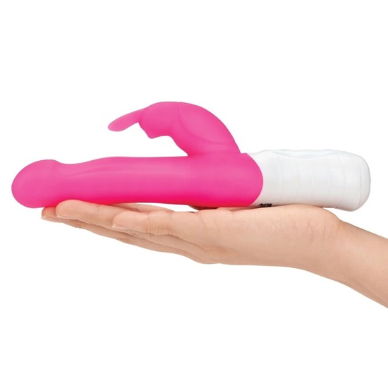 The Rabbit Essentials Slim Shaft Rabbit Vibrator is a rechargeable women’s toy that treats you to both g-spot and clitoral pleasures. This Slim Shaft Rabbit Vibrator targets your g-spot with its lifelike shape and rotating beads whilst the rabbit ears vibrate and flicker on your clitoris simultaneously bringing you to ecstasy.