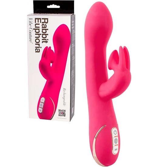 Enjoy frustration-free control with the Vibe Couture Euphoria easy-touch 3-button control pad on this rabbit vibrator. Vibe Couture’s hypoallergenic premium silicone is body-safe, unscented, and phthalate free to keep your most sensitive spots, happy and healthy.