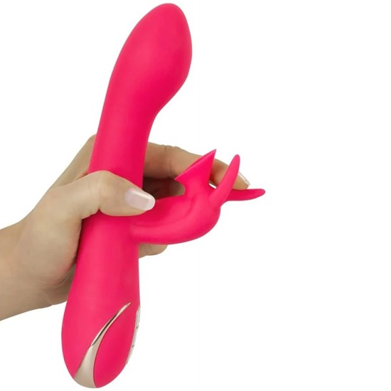 This waterproof Euphoria silicone rabbit vibrator with the combination of its vibrating shaft, and the silky smooth clit sucker stimulator feels unbelievably soft against your skin.